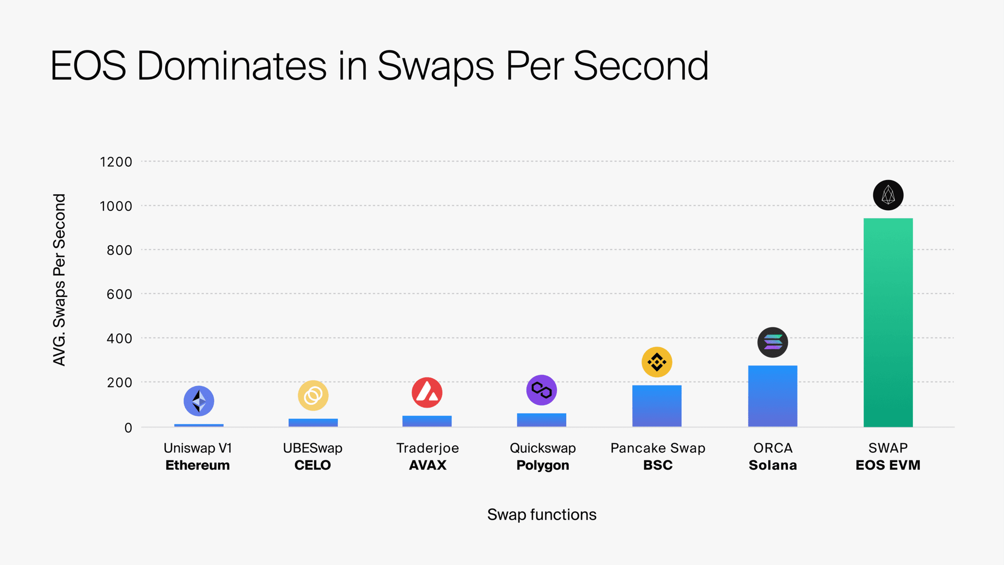 - High Throughput: The system can handle over 950 swaps per second, demonstrating a remarkable capacity for high-volume transaction processing compared to other technologies.