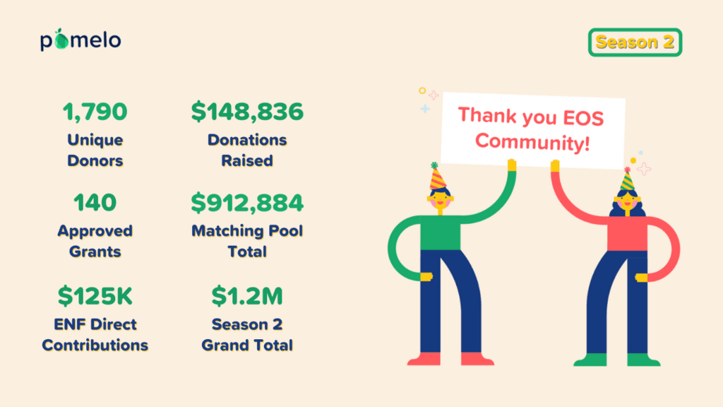 The next season of Pomelo is right around the corner and will begin on July 19th. The Pomelo team just released a new article to announce the kickoff of Season 3, share the Pomelo Season 3 Schedule, help promote your grants, and provide info about stellar NFT festivities that are beginning on June 21st. Combined with the huge success of Pomelo Season 1, almost 2 million dollars has now been distributed to foster the development of 218 public goods projects on EOS. The retrospective article showed great progress and helpful improvements over the first two seasons of Pomelo. Now, it’s time to get ready for much more public goods & funding opportunities than ever in Season 3!