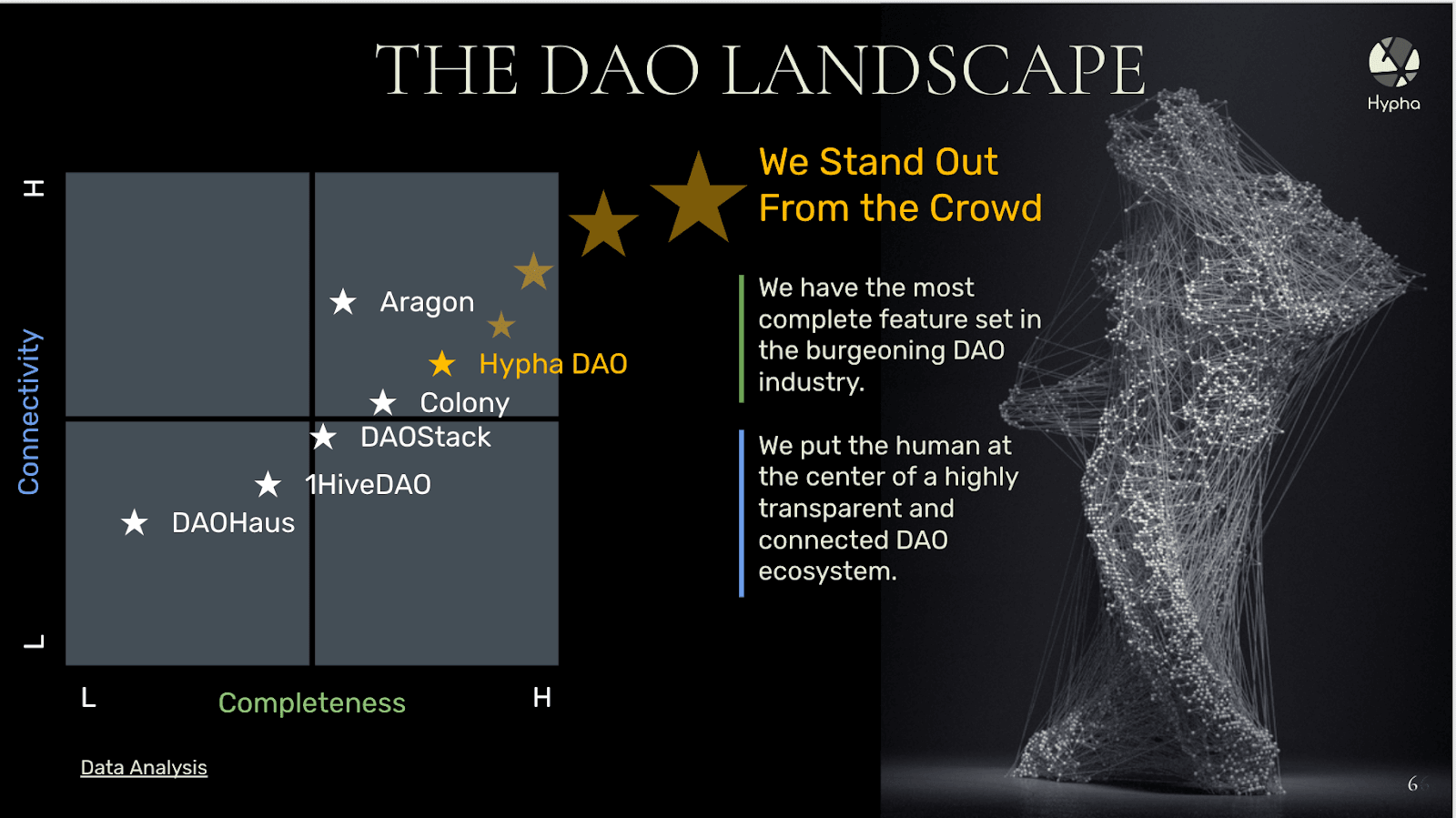 - Beyond launching individual DAOs, Hypha enables the creation of large interconnected ecosystems of DAOs to bring to life a new form of human coordination for large-scale impact around the globe.