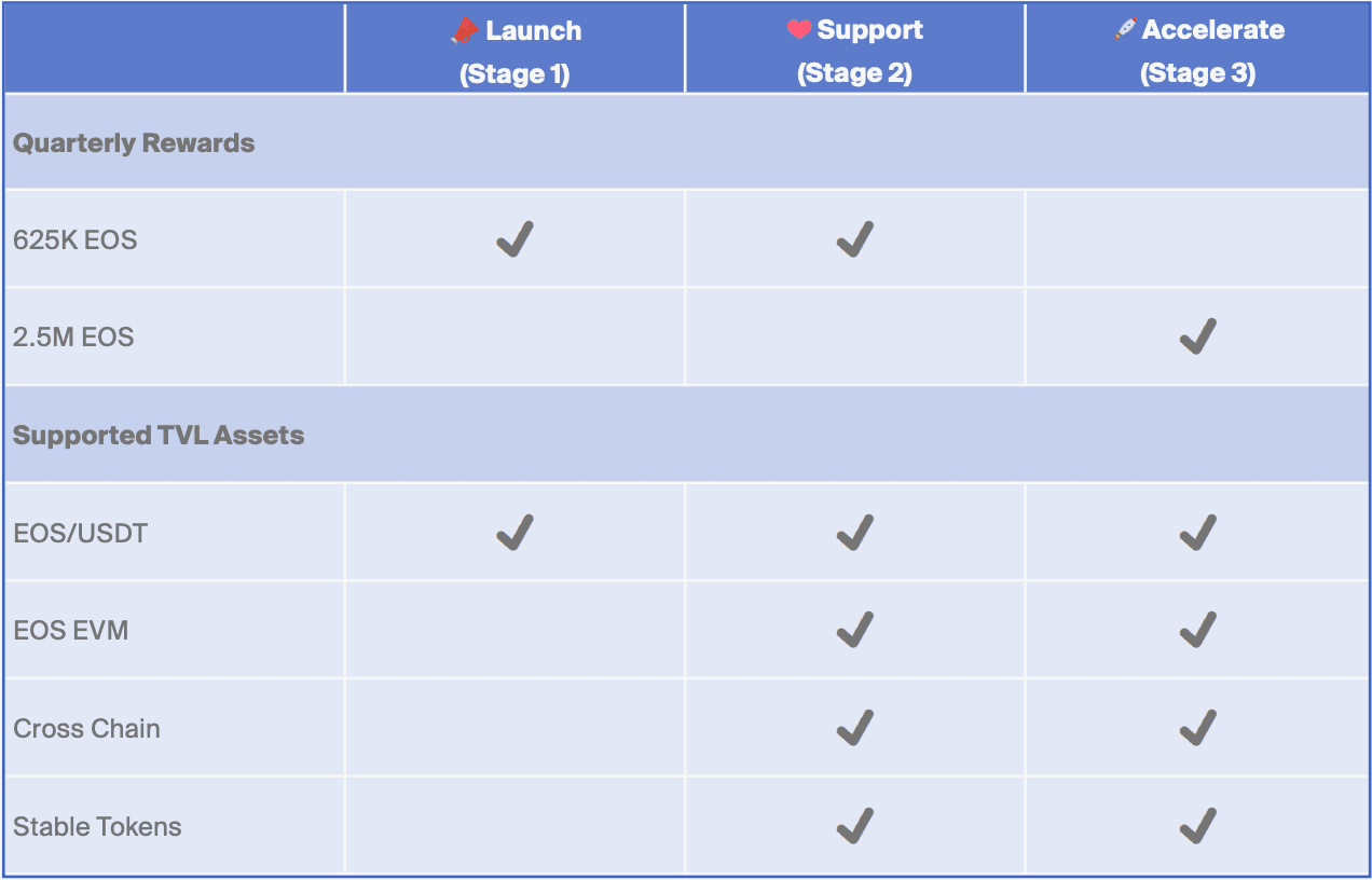- Maximum eligibility for rewards is 6M EOS TVL per protocol.