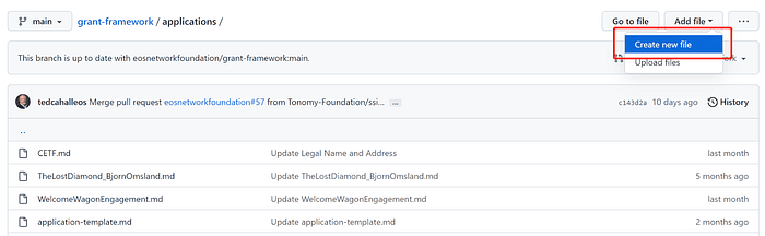 3、在您的分叉版本中,创建一个资助申请模板(applications/application-template.md)副本。如果您使用的是GitHub Web界面,则需要在applications文件夹中创建一个新文件并将模板的内容复制到新文件中。请确保不要直接修改模板文件。