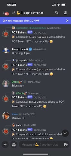 获取POP代币最简便的方式是参加每周EOS社区围炉谈话,该活动北京时间每周四03:00将在EOS社区Discord上举办。