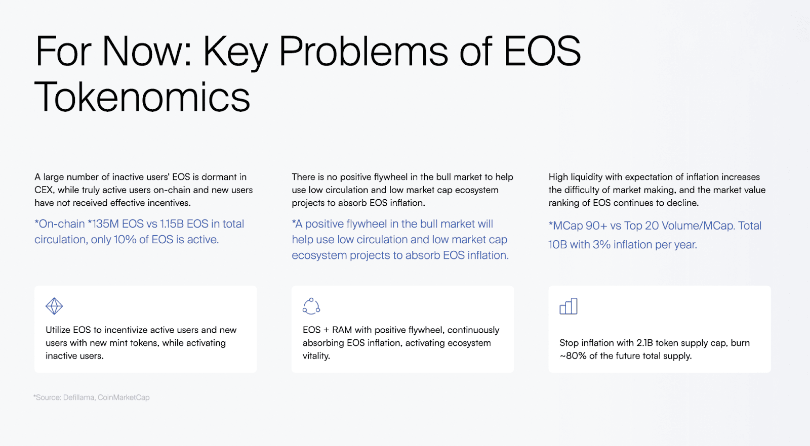 Yves La Rose 在会议期间介绍了 EOS 代币经济学的全面更新,强调从通胀型代币供应模式向固定代币供应模式的战略转变。